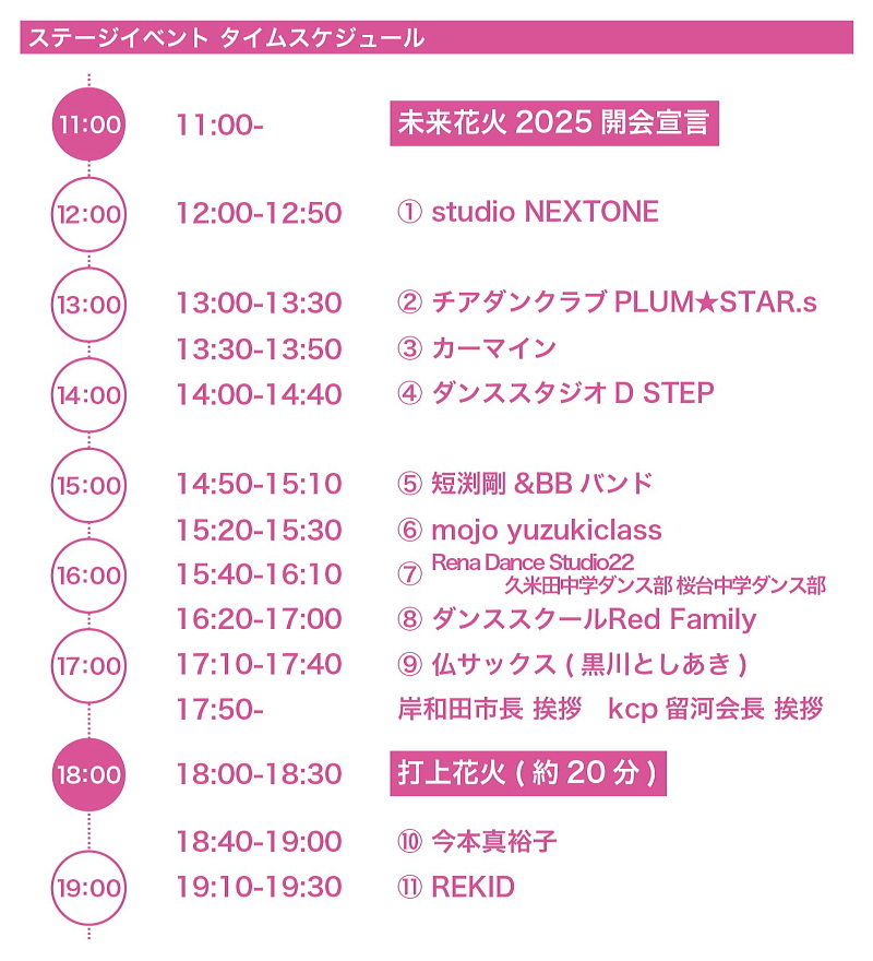 - 11:00-19:30 ※花火打上げ18時~